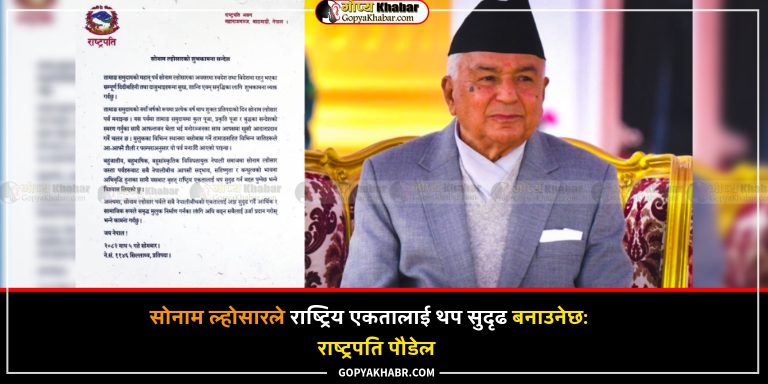 काठमाडौं – राष्ट्रपति रामचन्द्र पौडेलले सोनाम ल्होसार जस्ता पर्वहरूबाट सबै नेपालीबीच आपसी सद्भाव, सहिष्णुता र बन्धुत्वको भावना अभिवृद्धि हुने बताएका छन् । सोमबार सोनाम लोसारको अवसरमा शुभकामना सन्देश दिदैँ उनले