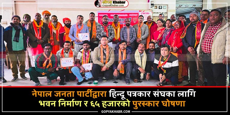 वीरगन्ज- नेपाल जनता पार्टीले पत्रकारिताको माध्यमबाट हिन्दूत्व र समाजको सेवामा लागेका सञ्चारकर्मीहरूको सम्मान र वृत्तिविकासका लागि ठूलो घोषणा गरेको छ।