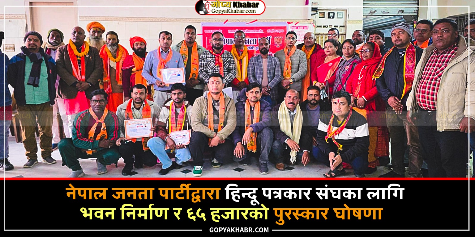 वीरगन्ज- नेपाल जनता पार्टीले पत्रकारिताको माध्यमबाट हिन्दूत्व र समाजको सेवामा लागेका सञ्चारकर्मीहरूको सम्मान र वृत्तिविकासका लागि ठूलो घोषणा गरेको छ। वीरगन्जको रानीसती धर्मशालामा आयोजित एक विशेष समारोहका बीच पार्टीले हिन्दू