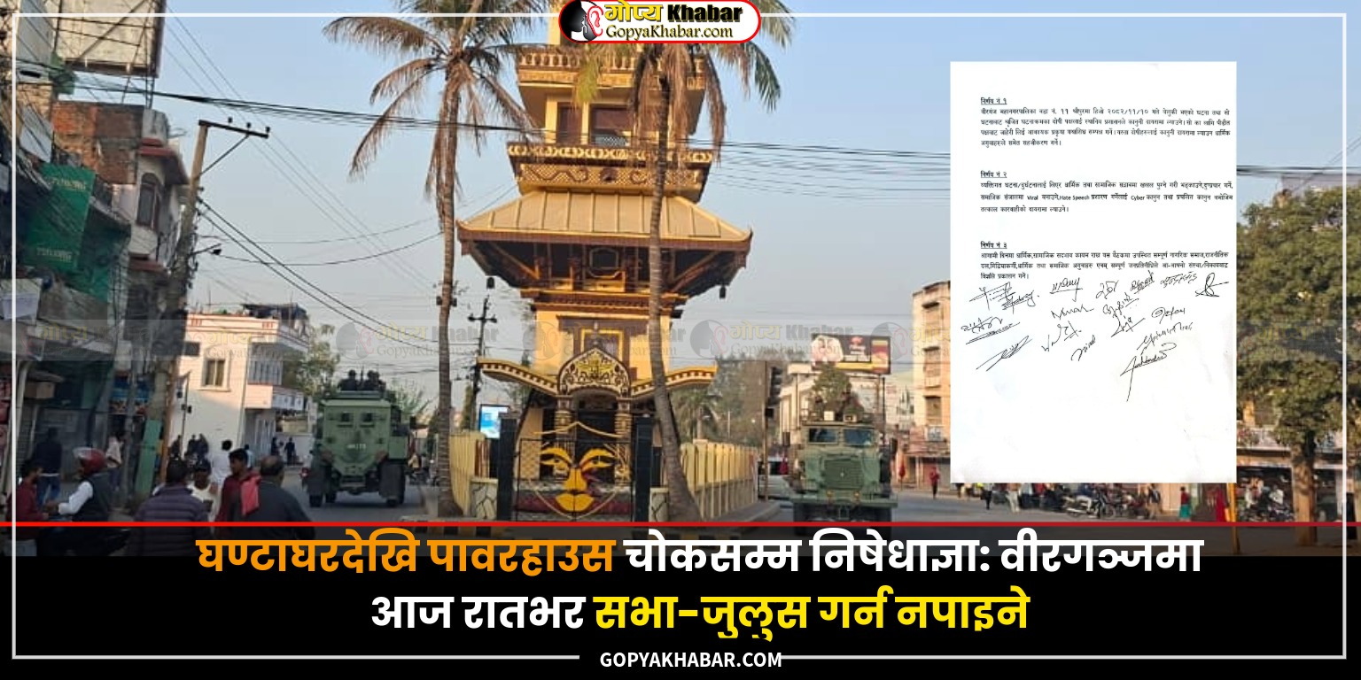 वीरगन्ज- जिल्ला प्रशासन कार्यालय पर्साले आज बिहान जारी गरेको कर्फ्यु