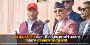काठमाडौं – नेकपा एमालेका अध्यक्ष केपी शर्मा ओलीले देशमा शान्ति, सुशासन र विकास सुनिश्चित गर्न आवश्यक रहेको बताएका छन् । नेसनल भोलेन्टियर फोर्स कोशी युनिफाइड कमान्ड घोषणा सभामा बोल्दै उनले