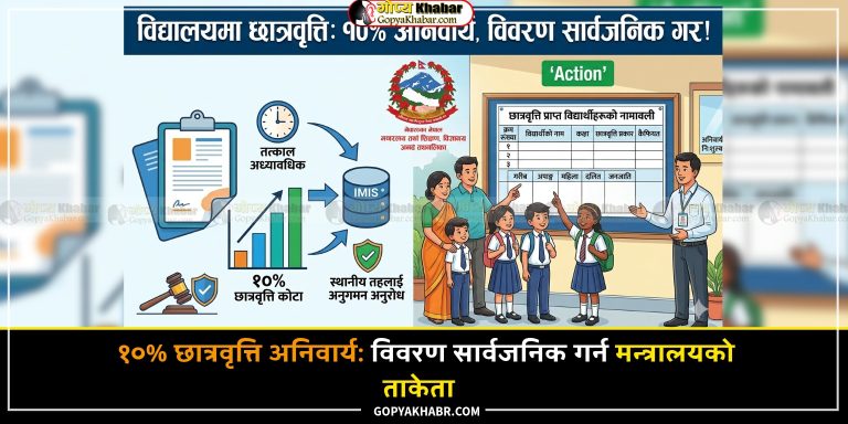 काठमाडौं – शिक्षा, विज्ञान तथा प्रविधि मन्त्रालयले नियम बमोजिम छात्रवृत्ति प्रदान नगर्ने विद्यालयलाई कानुन बमोजिम आवश्यक कारबाही गर्न सम्पूर्ण स्थानीय