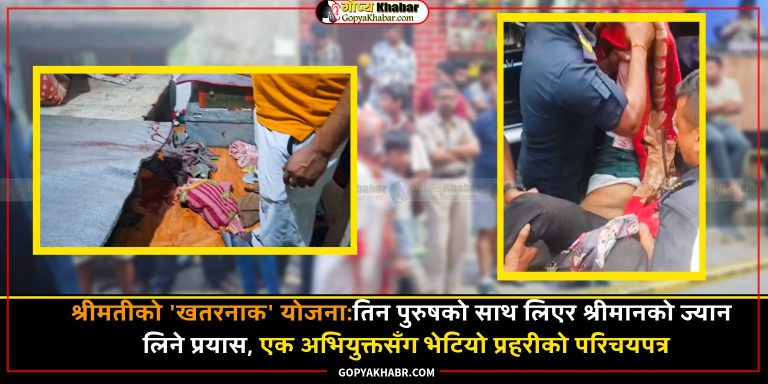 वीरगन्ज- वीरगन्ज महानगरपालिका वडा नम्बर ९ मा डेरा गरी बस्ने एक महिलाले तिन पुरुषको सहयोगमा आफ्नै श्रीमानको हत्या प्रयास गरेको सनसनीपूर्ण घटना सार्वजनिक भएको छ। छिमेकीहरूको सतर्कता र प्रहरीको तदारुकताका