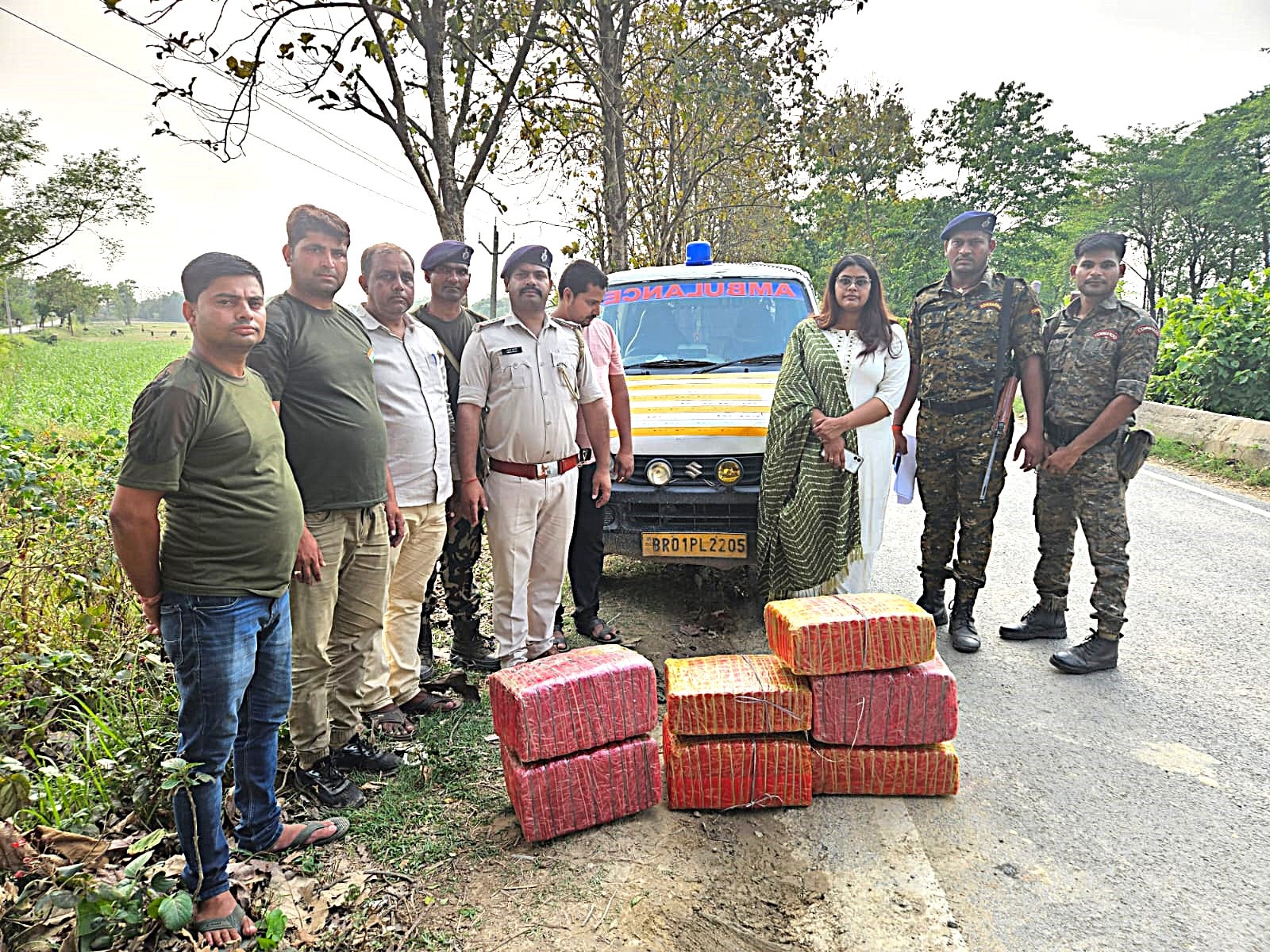 रक्सौल अनुमण्डलको हरपुर थाना क्षेत्रअन्तर्गत बडवा पेट्रोल पम्प नजिकै गोप्य सूचनाको आधारमा प्रहरीले एक एम्बुलेन्स (BR०१PL२२०५) बाट ७ प्याकेटमा करिब ७८ किलोग्राम गाँजा बरामद गरेको छ। उक्त एम्बुलेन्सका चालक आशुतोष कुमार, पिता अरविन्द कुमार ठाकुर, ग्राम हरिशंकर मनियारी, थाना मनिहारी, मुजफ्फरपुरलाई आदापुर सिओको उपस्थितिमा पक्राउ गरिएको छ। उनको पहिचान मुजफ्फरपुरको सदर अस्पतालको स्वास्थ्य विभागसँग सम्बन्धित कर्मचारीको रूपमा भएको छ।