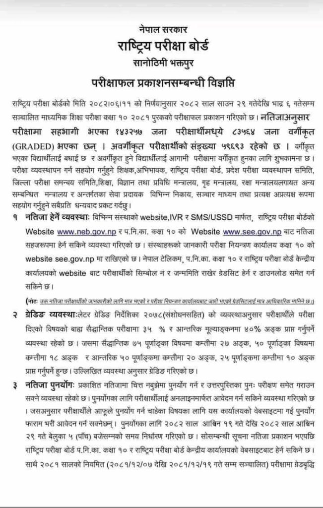एसईई पूरक परीक्षाको नतिजा सार्वजनिक, ८३ हजार बढी विद्यार्थी उत्तीर्ण