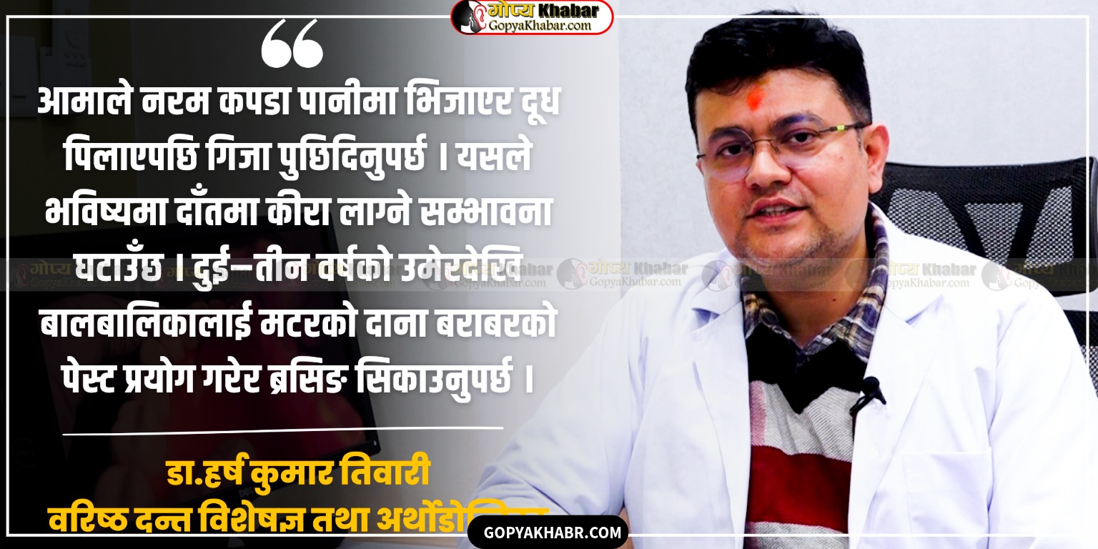 वरिष्ठ दन्त विशेषज्ञ तथा अर्थोडोन्टिस्ट डा.हर्ष कुमार तिवारीले नेपालका ग्रामीण तथा शहरी क्षेत्रमा दन्त स्वास्थ्यबारे चेतना बढ्दै गएको बताएका छन् ।