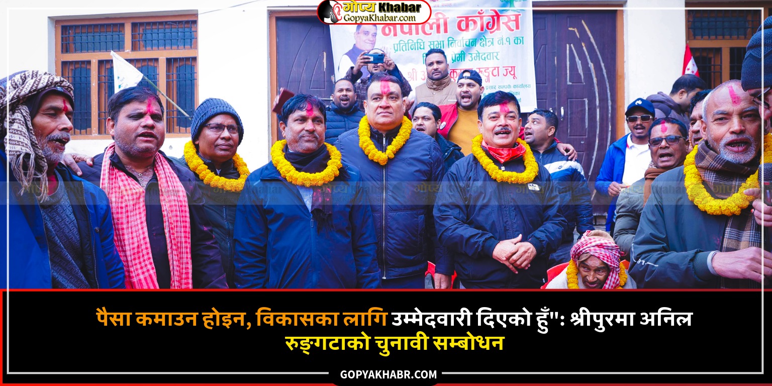 नेपाली कांग्रेसबाट पर्सा क्षेत्र नम्बर–१ का प्रतिनिधिसभा सदस्य उम्मेदवार अनिल रुङ्गटाले आफ्नो उम्मेदवारी विकास र सुशासनका लागि रहेको धारणा व्यक्त गर्नुभएको छ। वीरगन्ज महानगरपालिका वडा नं. ११ श्रीपुरमा सोमबार आयोजित कार्यकर्ता भेटघाट तथा पार्टी प्रवेश कार्यक्रमलाई सम्बोधन गर्दै उहाँले चुनाव जितेर पैसा कमाउनु आफ्नो उद्देश्य नभई क्षेत्रमा शान्ति, सुरक्षा र विकास गर्ने लक्ष्यसहित उम्मेदवारी दिएको स्पष्ट पार्नुभयो।