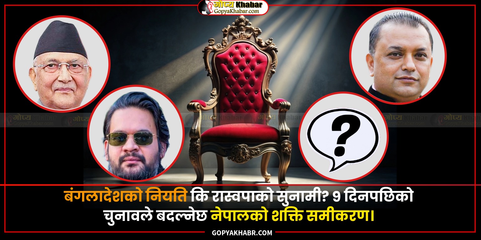 बंगलादेशको हालैको निर्वाचनमा परिवर्तनकामी शक्तिहरू किनारा लागेर पुनः पुरानै दल सत्तामा आएको नियति नेपालमा दोहोरिन्छ वा नयाँ शक्ति (रास्वपा) को पक्षमा पासा पल्टिन्छ, त्यो फागुन २१ को परिणामले नै बताउनेछ।