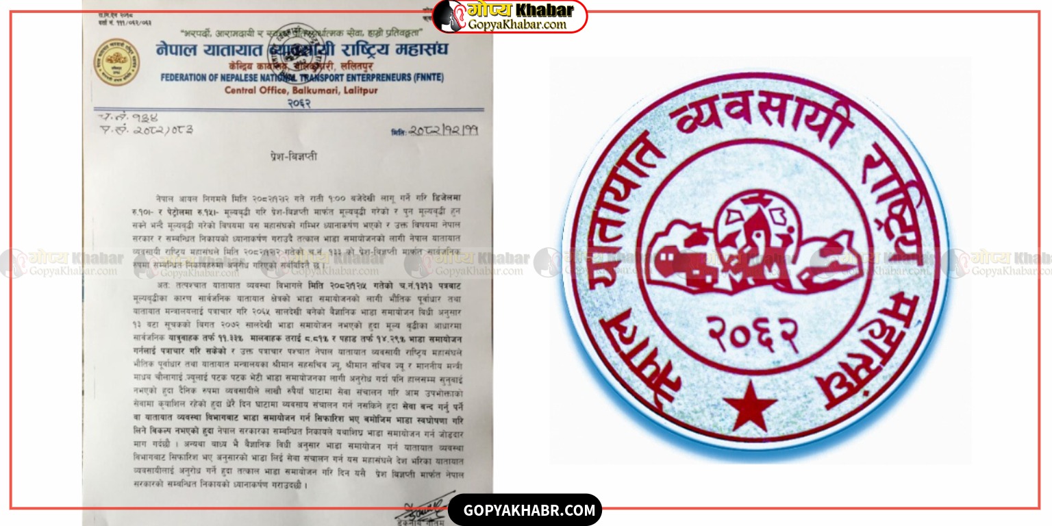 महासंघले यथाशीघ्र भाडा समायोजन नगरे देशभरका यातायात सेवा प्रभावित हुने चेतावनी दिएको छ ।
