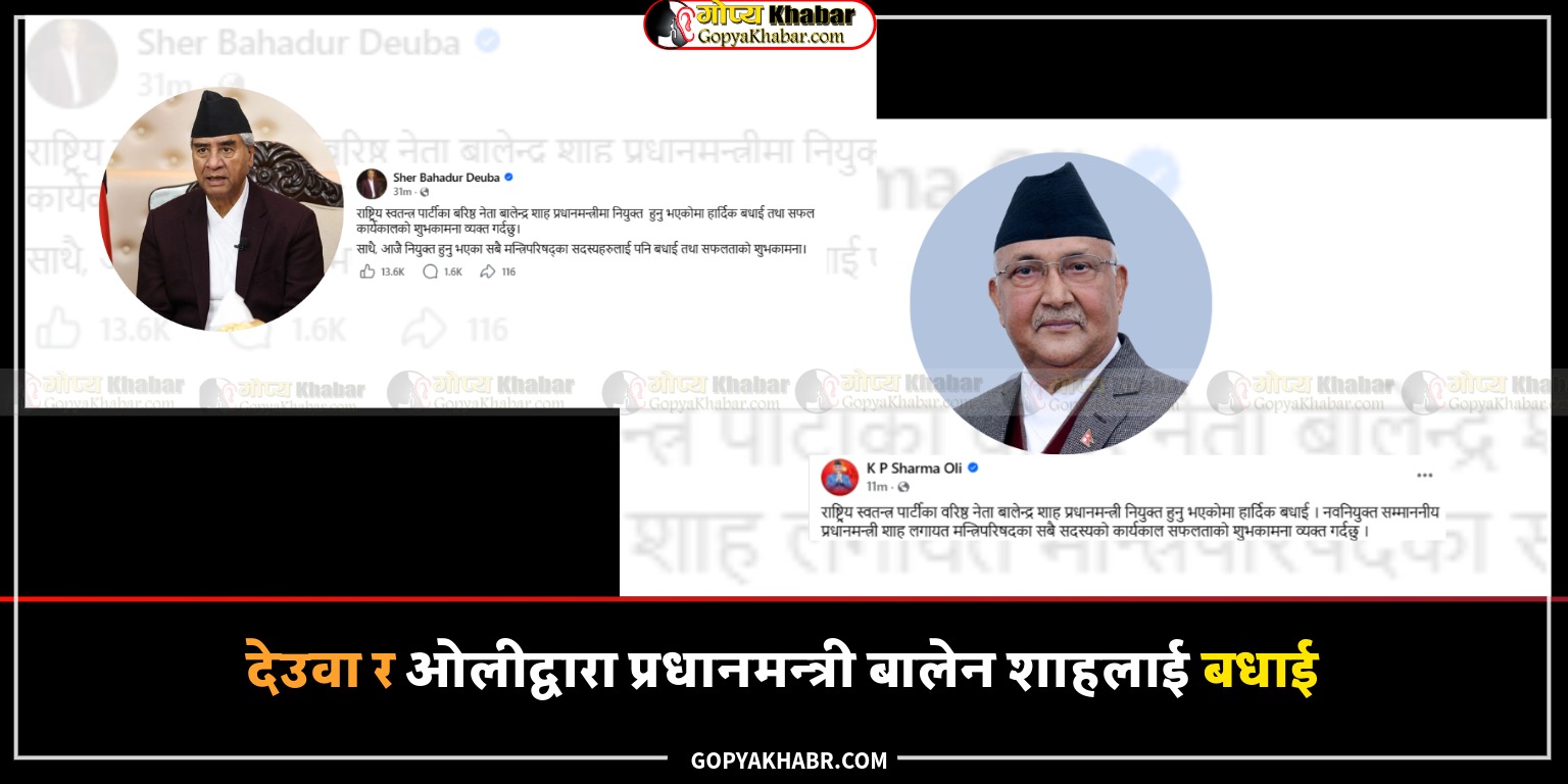 उनले लेखेका छन्, ‘नेपालको प्रधानमन्त्रीको रूपमा पद तथा गोपनीयताको शपथ ग्रहण गर्नुभएकोमा श्री बालेन्द्र शाहलाई हार्दिक बधाई ।’