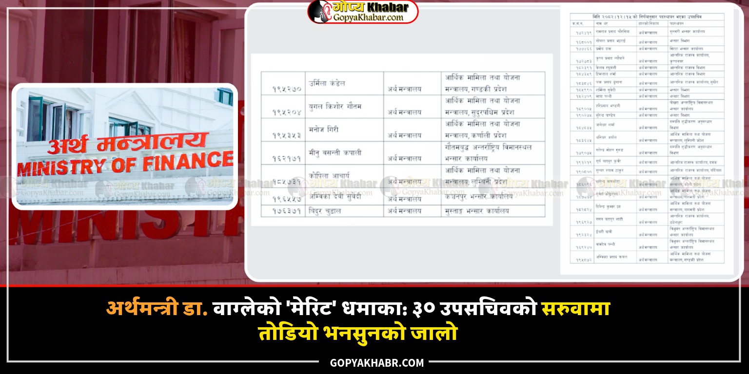 अर्थमन्त्रालयले मेरिटमा आधारित गर्यो ३० उपसचिवको सरुवा तथा पदस्थापन