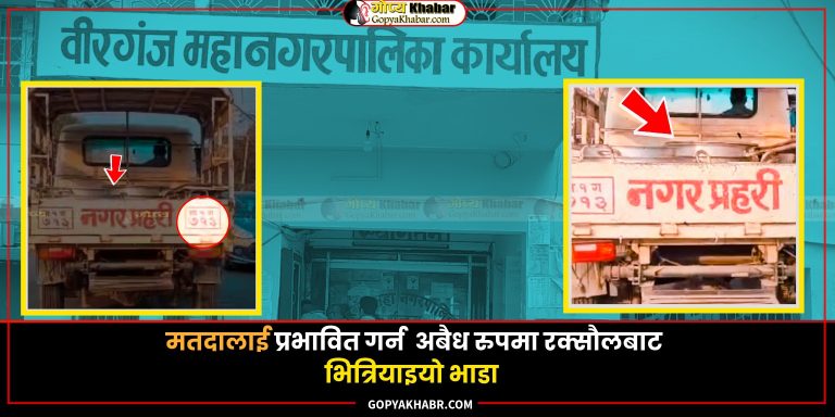 वीरगन्ज- वीरगन्ज महानगरपालिकाको सवारी साधन प्रयोग गरी राजश्व छली गरिएको आरोप सार्वजनिक भएको छ। महानगरपालिकाको नगर प्रहरीले प्रयोग गर्ने सेतो