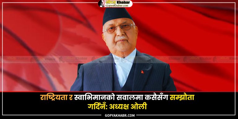 काठमाडौं – नेकपा एमालेमा अध्यक्ष केपी शर्मा ओलीले आफूले देशको स्वाभिमान र राष्ट्रियताको सवालमा कसैसँग कहिल्यै सम्झौता नगरेको बताएका छन्