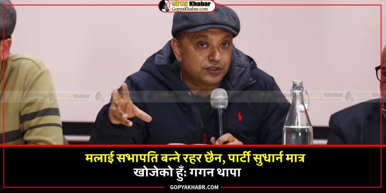 काठमाडौं- नेपाली काँग्रेसका महामन्त्री गगनकुमार थापाले सभापति बन्नका लागि आफूहरुले विशेष महाधिवेशनको माग नगरेको स्पष्ट पार्नुभएको छ । बुद्धिजीविहरुसँगको बुधवारको