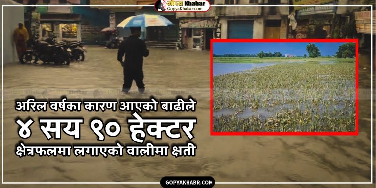 बिजय चौहान/वीरगन्ज- अरिल वर्षका कारण आएको बाढीले पर्सा जिल्लामा ४ सय ९० हेक्टर भन्दा बढी क्षेत्रफलमा लगाएका धान तथा तरकारी