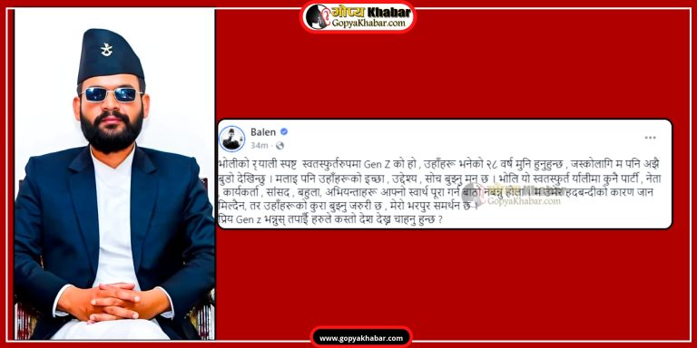 काठमाडौं – काठमाडौं महानगरपालिकाका मेयर बालेन्द्र शाह (बालेन) ले जेनजी पुस्ताको विरोध र्यालीमा सहभागी बनेर बाठो नबन्न नेता÷अभियन्ताहरूलाई आग्रह गरेका
