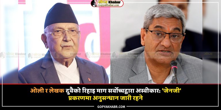 काठमाडौँ- सर्वोच्च अदालतले नेकपा (एमाले) का अध्यक्ष एवं पूर्वप्रधानमन्त्री केपी शर्मा ओलीलाई बन्दी प्रत्यक्षीकरण रिटमार्फत तत्काल रिहा गर्न अस्वीकार गरेको