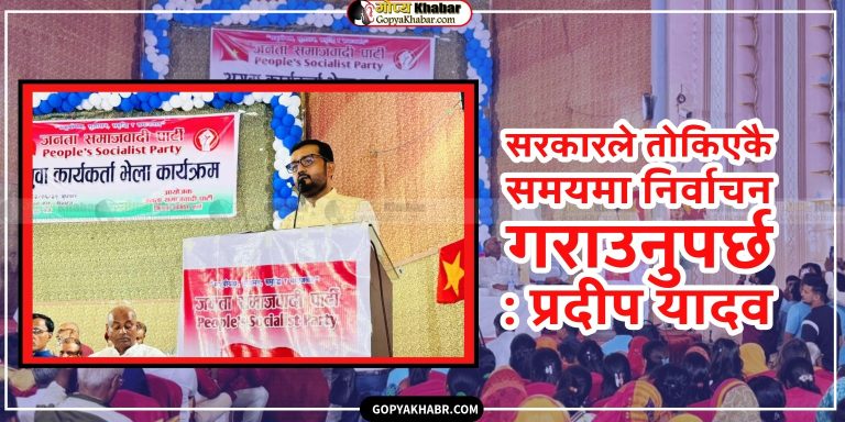 वीरगन्ज- जनता समाजवादी पार्टीका उपमहासचिव एवं पूर्वमन्त्री प्रदीप यादवले सरकारले तोकिएको समयमै अर्थात आगामी फागुन २१ गते देशमा निर्वाचन गराउनुपर्ने