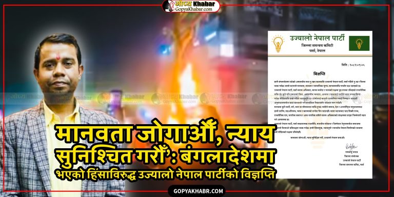 वीरगन्ज- उज्यालो नेपाल पार्टी, जिल्ला समन्वय समिति पर्साले बंगलादेशमा हालै घटेका अमानवीय तथा दुःखद घटनाप्रति गहिरो दुःख र चिन्ता व्यक्त
