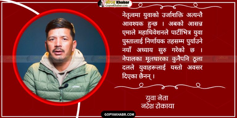 नेतृत्वमा युवाको उर्जाशक्ति अत्यन्तै आवश्यक हुन्छ । अबको आसन्न एमाले महाधिवेशनले पार्टीभित्र युवा पुस्तालाई निर्णायक तहसम्म पुर्याउने नयाँ अध्याय सुरु