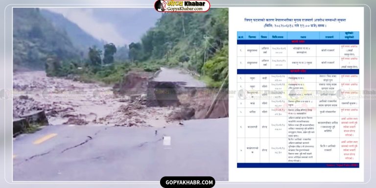 काठमाडौं- वर्षाका कारण देशका विभिन्न राजमार्ग अवरुद्ध भएका छन् । नेपाल प्रहरीले शनिबार बिहान ११ बजेसम्मको अवस्थाबारे दिएको विवरणअनुसार काठमाडौं