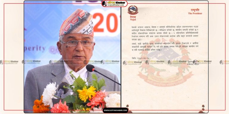काठमाडौं – राष्ट्रपति रामचन्द्र पौडेलले आगामी फागुन २१ गतेका लागि तोकिएको प्रतिनिधिसभाको निर्वाचन सम्पन्न गराउने काममा सहयोग गर्न सबै पक्षलाई