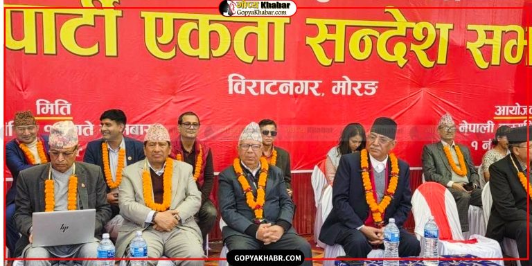 विराटनगर – नेपाली कम्युनिष्ट पार्टीले कोशी प्रदेशको राजधानी विराटनगरमा सोमबार भव्य ‘पार्टी एकता सन्देश सभा’ आयोजना गर्यो । सभामा पार्टी
