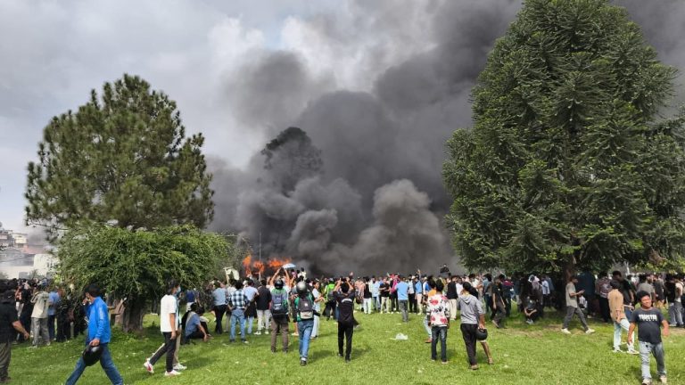 काठमाडौं- जेनजी आन्दोलनमा सहभागी प्रदर्शनकारीहरुले संसद भवनमा आगजनी गरेका छन् । प्रदर्शनकारी उनीहरुलाई प्रहरीले रोकेको थियो । केहीबेरमा उनीहरुले गेट