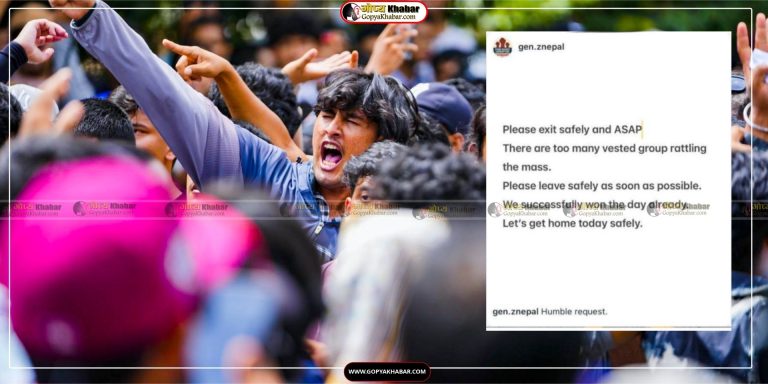 काठमाडौं-सामाजिक सञ्जाल प्रतिबन्ध र भ्रष्टाचारविरुद्ध आन्दोलनमा उत्रिएका जेनजीहरूले आफ्नै प्रदर्शनमा घुसपैठ भएको भन्दै सबैलाई घर फर्किन आह्वान गरेका छन्। जेनजी