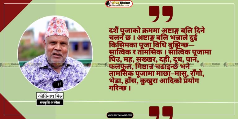 कीर्तिनाथ मिश्र संस्कृति अध्येता दशैंमा देवीलाई खुशी पार्ने बस्तुहरु के के हुन् ? काठमाडौं – बडादशैं किन मनाइन्छ भन्ने प्रश्नमा