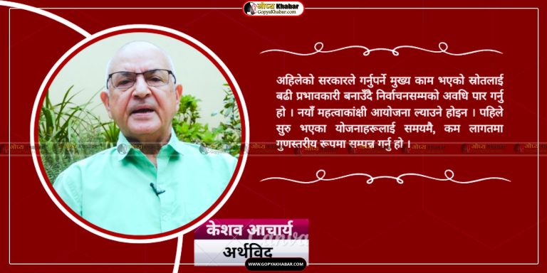 अहिलेको सरकारले गर्नुपर्ने मुख्य काम भएको स्रोतलाई बढी प्रभावकारी बनाउँदै निर्वाचनसम्मको अवधि पार गर्नु हो । नयाँ महत्वाकांक्षी आयोजना ल्याउने