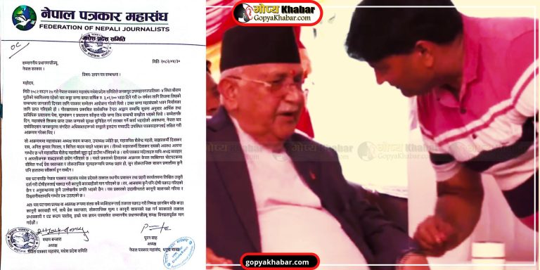 जनकपुर — जनकपुरमा पत्रकारमाथि भएको आक्रमणप्रति आपत्ति जनाउँदै नेपाल पत्रकार महासंघ, मधेश प्रदेश समितिले प्रधानमन्त्रीलाई ज्ञापनपत्र बुझाएको छ। साउन २७