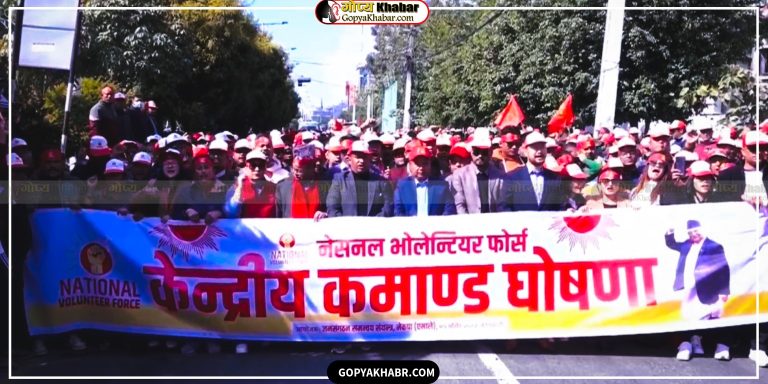 काठमाडौं- नेकपा एमालेको नेशनल भोलेन्टियर फोर्सले काठमाडौंमा प्रदर्शन गरेको छ । शुक्रवार मध्यान्ह फोर्सले काठमाडौंको माईतीघर मण्डलामा प्रदर्शन गरेको हो