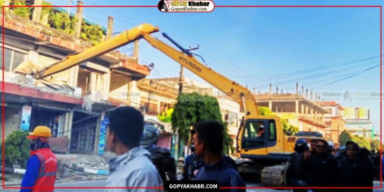 सडक विस्तार गर्न हेटौंडामा बिहानैदेखि डोजर