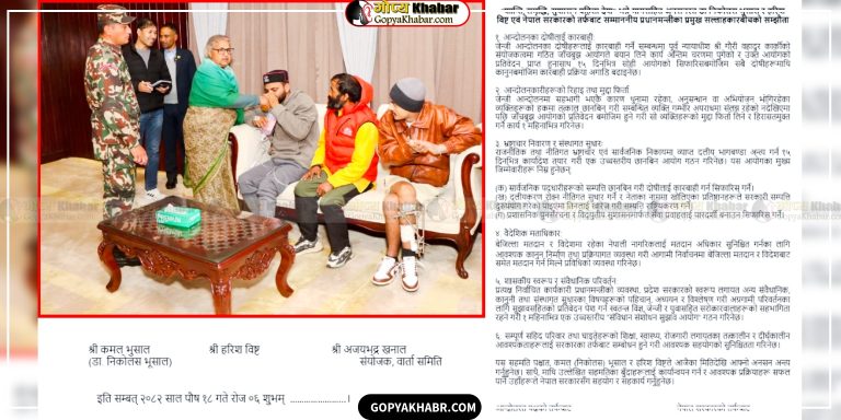 काठमाडौं- सरकारले अनशनरत डा. निकोलस भुसाल र हरिश विष्टसँग ६ बुँदे सम्झौता गरेसँगै उनीहरूको ११औँ दिनको अनशन अन्त्य भएको छ।