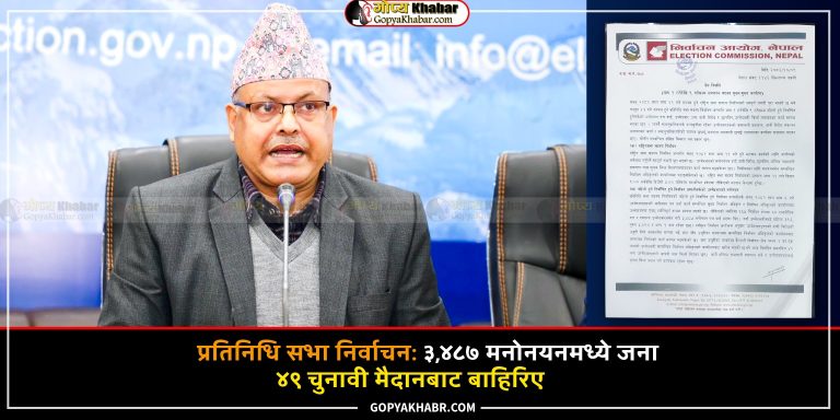 काठमाडौं – आसन्न प्रतिनिधिसभा सदस्य निर्वाचनका लागि उम्मेदवारी दिएका मध्ये देशभर ४९ जनाले आफ्नो उम्मेदवारी फिर्ता लिएका छन् । शुक्रबार