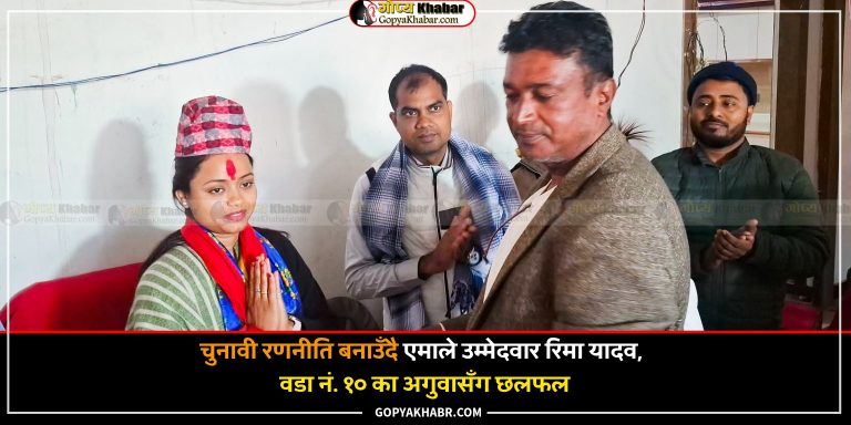 वीरगन्ज- आगामी फागुन २१ गते हुने प्रतिनिधि सभा निर्वाचनका लागि नेकपा (एमाले) पर्सा क्षेत्र नम्बर २ की उम्मेदवार रिमा कुमारी