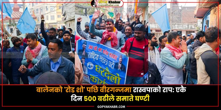 वीरगन्ज- पर्सा जिल्लामा राष्ट्रिय स्वतन्त्र पार्टी (रास्वपा) को पक्षमा जनलहर ह्वात्तै बढेको छ। निर्वाचनको मिति नजिकिँदै गर्दा जिल्लाका विभिन्न टोलहरूमा