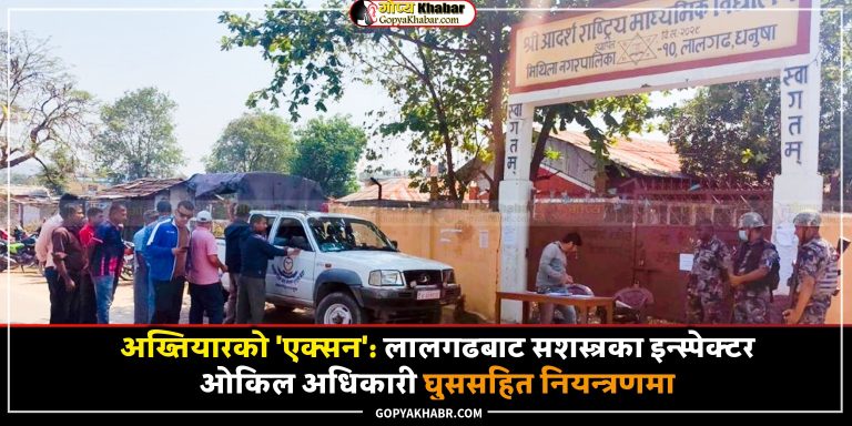 जनकपुरधाम- अख्तियार दुरुपयोग अनुसन्धान आयोगले धनुषाको लालगढबाट सशस्त्र प्रहरी निरीक्षक (इन्स्पेक्टर) ओकिल अधिकारीलाई ४० हजार रुपैयाँ घुससहित रंगेहात पक्राउ गरेको